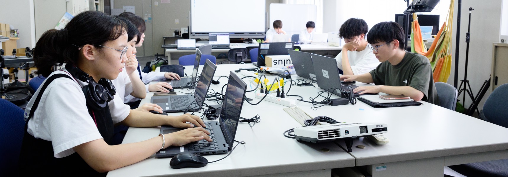 コンピュータ部は、プログラム開発班、メディアコンテンツ開発班、ゲーム開発班、研究開発班、地域協力開発班の5つの班に分かれて活動しています。全国の様々なコンテストにおいて表彰されており、多くの実績もあります。情報技術の最先端を学びたい人や、情報の国家資格を目指す人が入部しています。