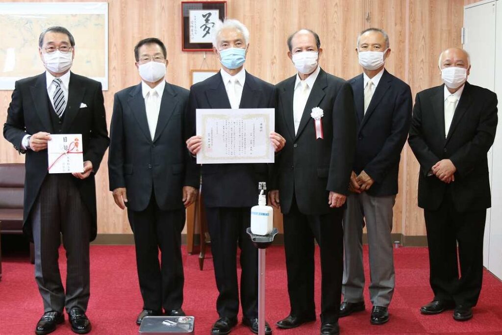 当日は、本校同窓会会長 広重 康成様から目録の贈呈があり、その後、本校福田校長から感謝状が贈られました。