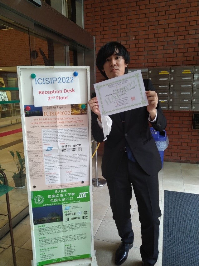 9/8(木)に開催された産業応用工学会全国大会2022にて、電子・情報システム工学専攻2年の由田翔吾君が「空間的情報と動き情報の共起学習によるハンドジェスチャ認識」というタイトルで研究発表を行い、優秀論文発表賞を受賞しました。