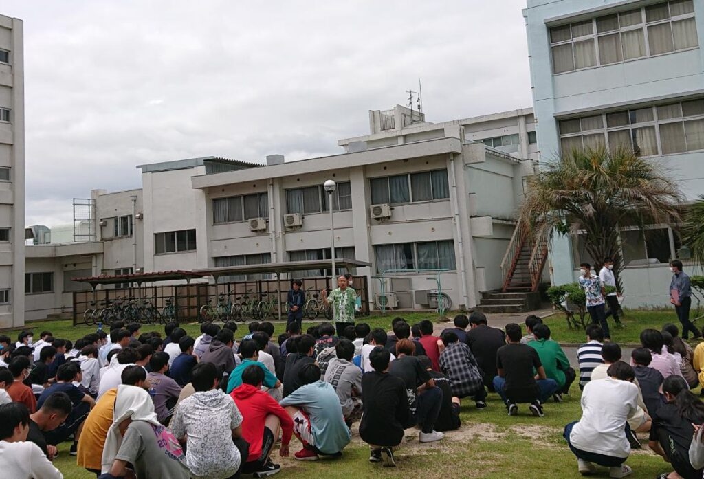 避難指示時刻から約10分後に寮生会から避難完了が報告され、その後校長から「大島商船高等専門学校寮生会は、地域の防火組織としても期待されている。阪神淡路大震災において、神戸商船大学の寮生会が救助活動を行い、百余名を救助した。皆さんの若い力を地域にも貸してください」という講評がありました。