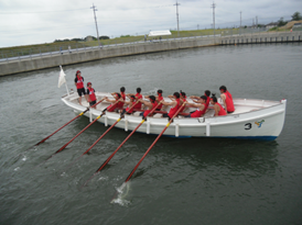 前日からの練習内容も良く意気揚々と予選に臨んだB艇は、スタートで出遅れたものの徐々に追い上げ得意の回頭(折り返し地点で艇を反転させること)で果敢に攻めるスタイルをとりましたが、オールがブイに接触したためルールにより失格となりました。決勝進出できるタイムであっただけに、B艇クルーは涙に咽びました。