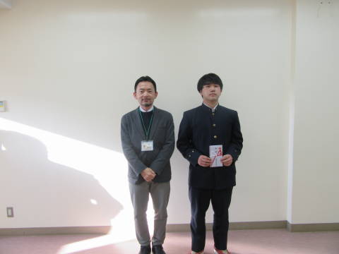 令和3年11月1日(月)~2日(火)秋田県立武道館にて行われた第56回全国高等専門学校体育大会(柔道競技)に、本校の城大輝君(情報工学科3年)が中国地区代表として出場したことで、12月23日(木)周防大島町より激励費が授与されました。
