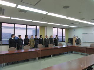 岡村春雄副町長(後ろ中央)と本校校長,ロボット研究部一同記念撮影