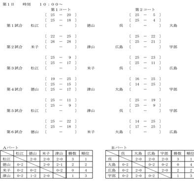男子団体 大島-松江 1-4、津山-大島 5-0 3位入賞