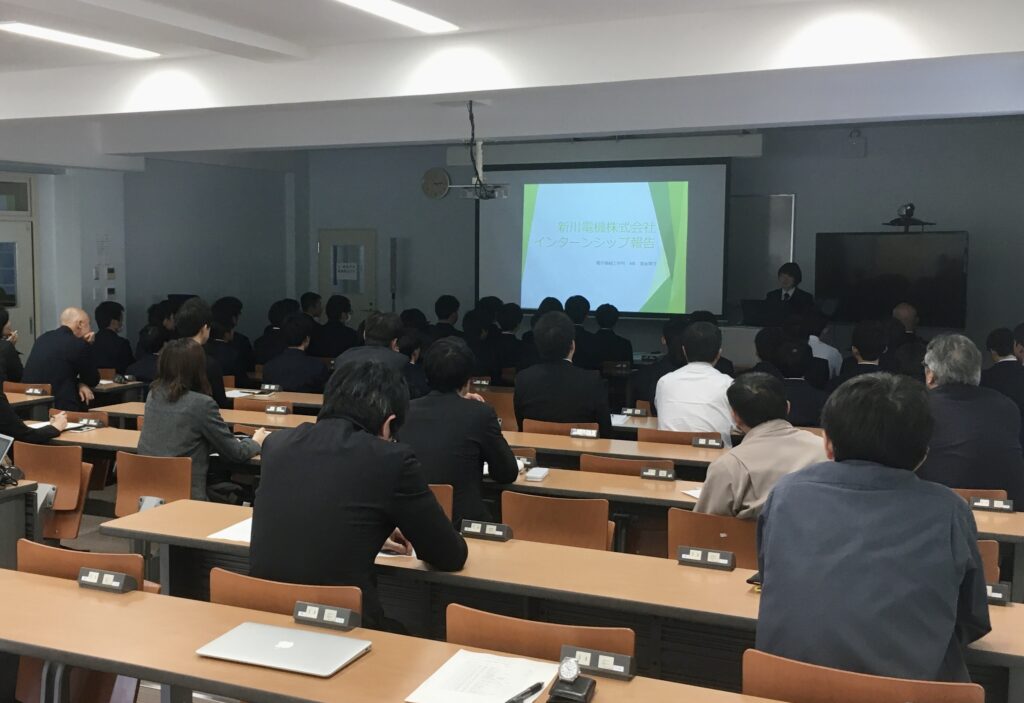 発表した学生からは、「コミュニケーションが重要であることがよく分かった」、「会社の雰囲気を知ることができてとても良かった」、「自分に不足している能力を向上して就活に臨みたい」などの感想が聞かれました。報告会終了後、各学生がお世話になった企業の方に感謝の気持ちを伝えることができました。