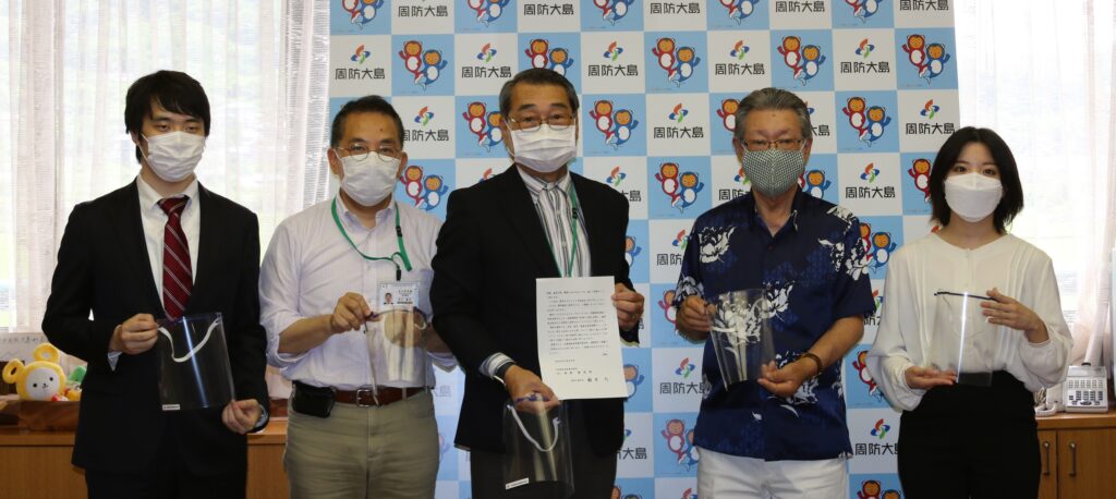 6月26日(金)に、周防大島町へ、本校にて作製したフェイスシールド100個を寄贈しました。