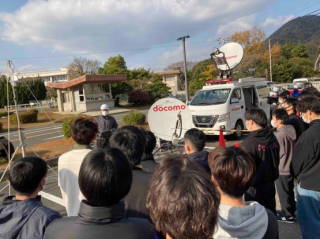 電子機械工学科では教育目標「福祉と環境も考慮に入れることのできる豊かな人間性と責任感の育成」の一環として、令和4年12月13日(火)にNTT docomoの技術者の方による通信事業者の災害対応に関する特別講演を開催しました。当日は、講義だけでなく、実際の災害時の通信障害に対応する機材や特別車両の展示・説明を受けました。学生も積極的に質問をするなど、身近な問題と技術の関わりについて学びました。
