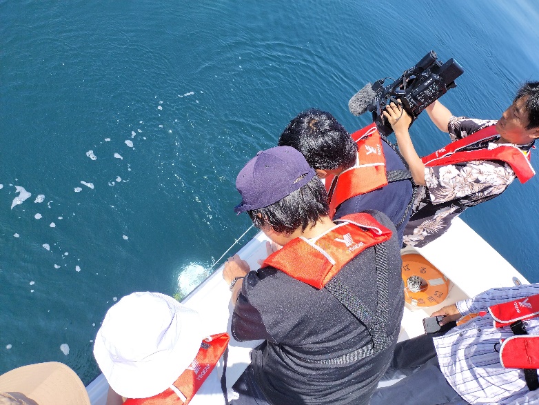 航行中には瀬戸内海各所の島、水路、港の状況について、「屋代島さとうみネットワーク」の田中貞徳代表より解説がありました。また、航行途中に、透明度・海色・水温等の海洋観測を、参加小学生を中心に実施してもらいました。そして、「広島県水産海洋技術センター水産センター」では、カキ養殖をはじめとする様々な施設を見せて頂き、広島県の水産技術の促進への取り組みについて、様々な話を聞かせて頂きました。参加者の皆様には、海、水産業、船、そして瀬戸内海の海洋環境保全について、様々な理解を深めて頂けたことと思います。