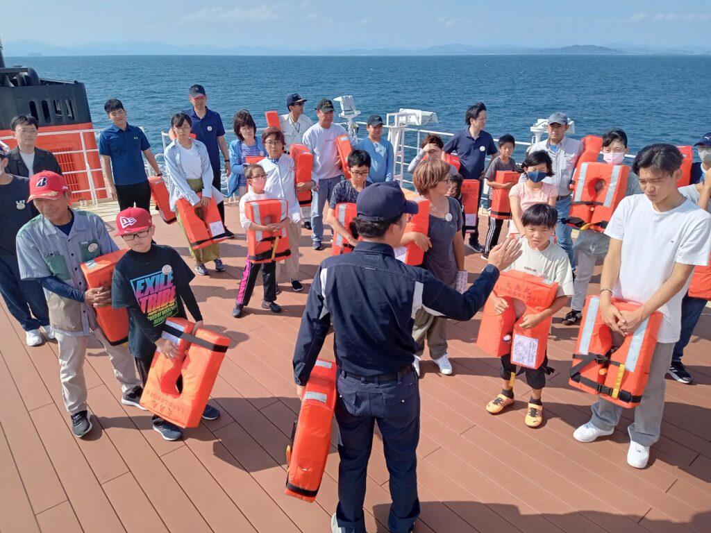 2023年8月24日~25日にかけて海洋立国懇話会主催、大島商船高専共催で本校練習船大島丸による体験航海を実施しました。小学4年生から中学3年生までの親子が福岡県北九州市から山口県周南市まで乗船しました。 普段は見ることのできない操舵室や機関室の見学、救命胴衣を装着する訓練や海洋環境や自動化船に関する講義が行われ、参加者は大変興味深く参加していました。 今回は1泊2日の航海ということで、船内で宿泊をするといった貴重な体験ができたのではないかと思います。 参加者からは「海の大切さを知ることができた」や「船の仕事に興味を持った」という声を聴くことができました。