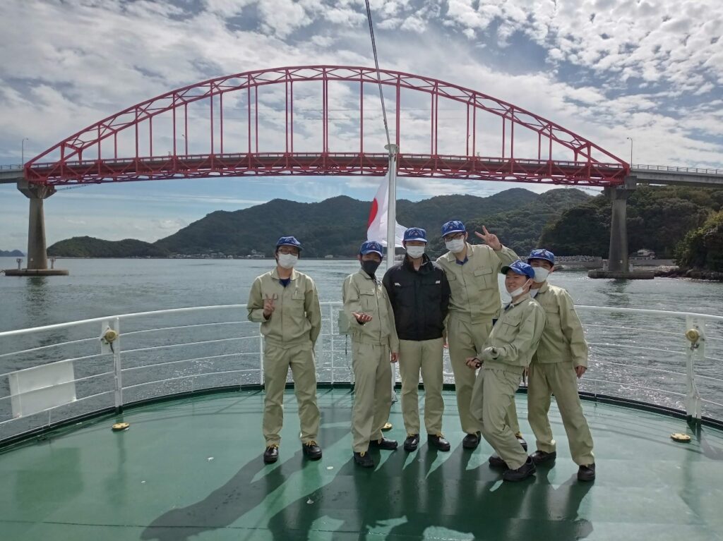 下松市笠戸島大橋通過後、プープデッキでのエンジンコース学生