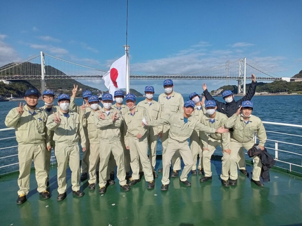 2022年10月11日から10月14日にかけて、商船学科5年生が徳山下松港・関門港下関・北九州(砂津)への航海実習を行いました。下関では新大島丸の進水式に参加し、砂津からは20時に出港し、関門海峡の夜間航行実習を行いました。4年後期の大型練習船実習の効果もあり、これまでの集大成の実習になりました。