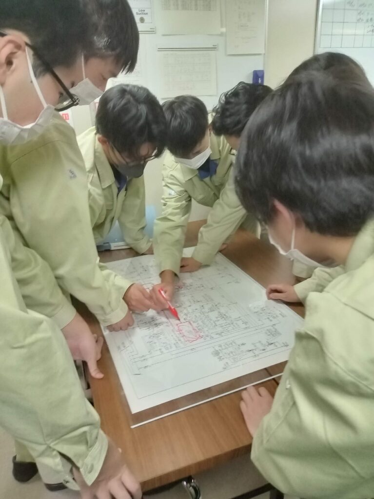 配管調査中のエンジンコース学生
