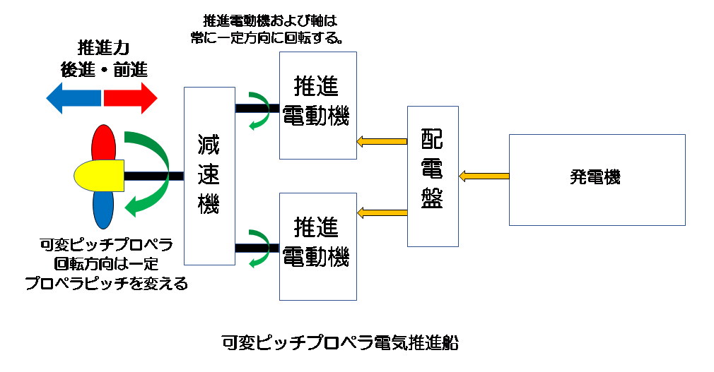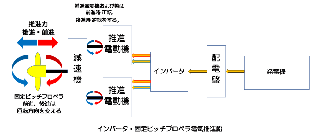 電気推進船で、前進・後進や速度を変更する方法には、下の2つの方法がある。