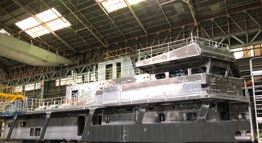 いよいよ船台にブロックが搭載されて、船の形になってきたからね。