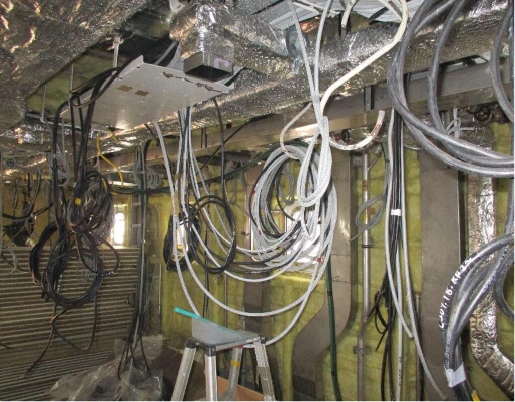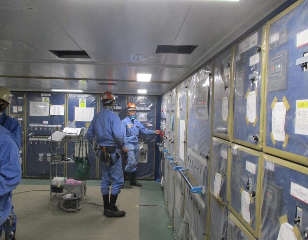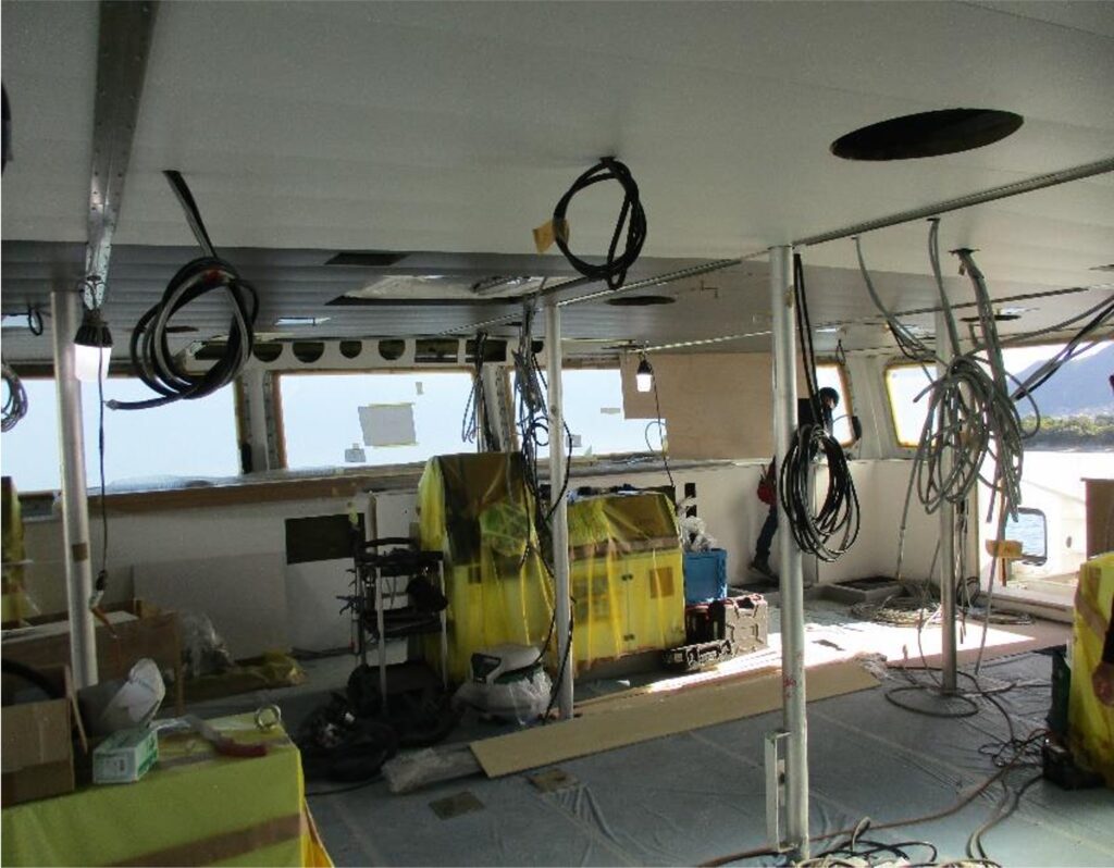 今は船内で断熱材を貼付けたり、ダクト(通風管)の配管や電線の配線が続々と行われている。
