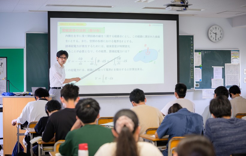 専門分野の授業では、基礎科目に重点を置くとともに、理論的な学習だけでなく工学実験、卒業研究などを通じて、技術の応用能力や自発的研究態度を養い、真に実践的な技術者の養成を目指しています。