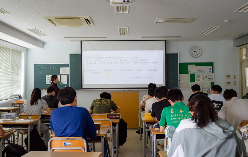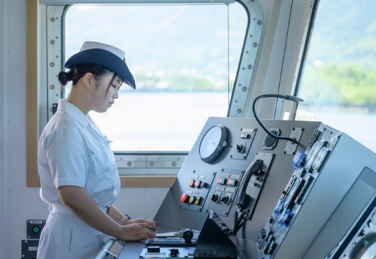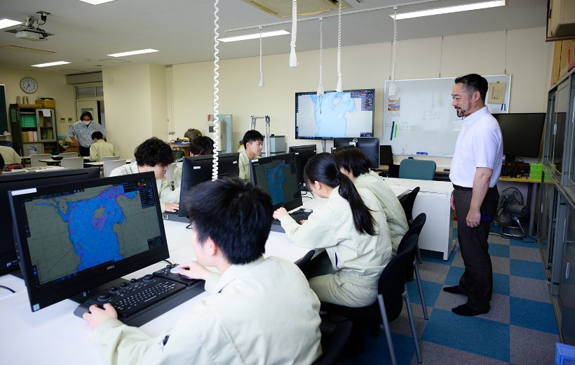 単に船を動かすだけではなく、資源や製品の輸出入の仕組みや物を運ぶシステム、安全を管理するシステムなど、最新の物資輸送に関するシステムを幅広く学んでいきます。