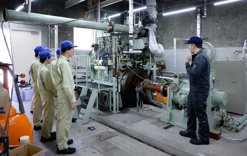 船のエンジンを動かすだけではなく、陸海空の交通機関や製造設備にも通用する機械や熱・電気などのエネルギーについてのエキスパートになる技術を学んでいきます。
